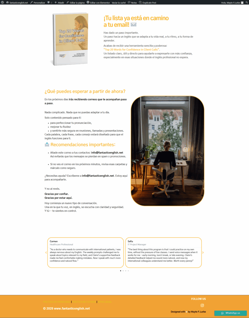 Trabajo preferentemente con WordPress + Elementor, ActiveCampaign / MailerLite / MailRelay y ThriveCart/Stripe/PayPal.